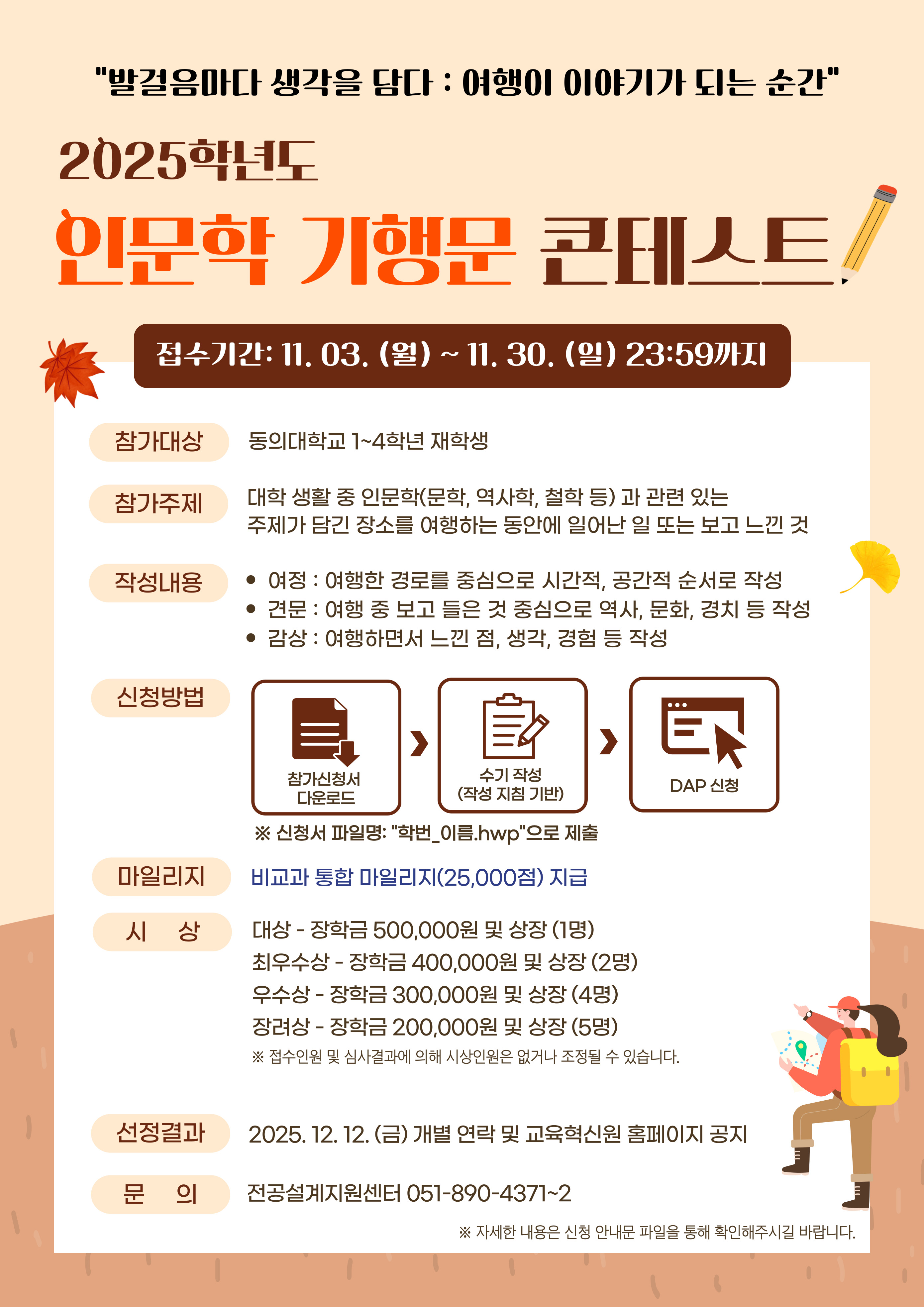 [대학혁신지원사업] 2025학년도 인문학 기행문 콘테스트 개최 안내